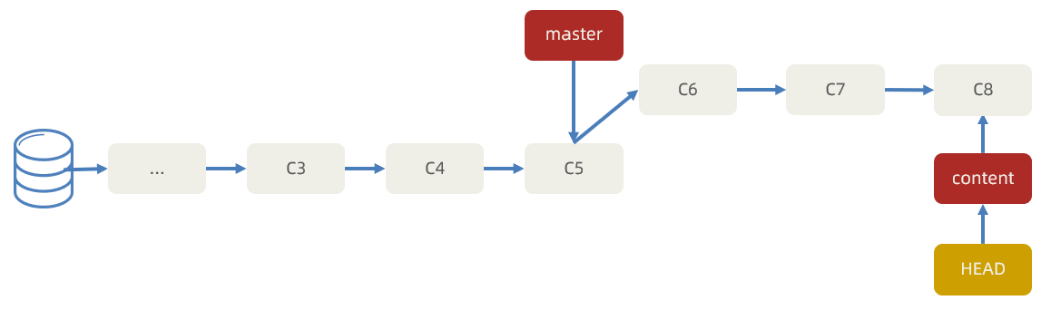 合并提交:发生于原分支产生了新的提交记录后,再合并回去时发生,自动使用多个快照记录合并后产生一次新的提交