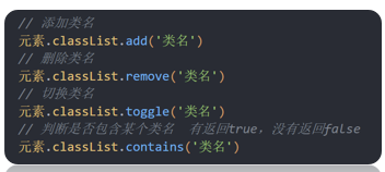 为了解决className 容易覆盖以前的类名,我们可以通过classList方式追加和删除类名